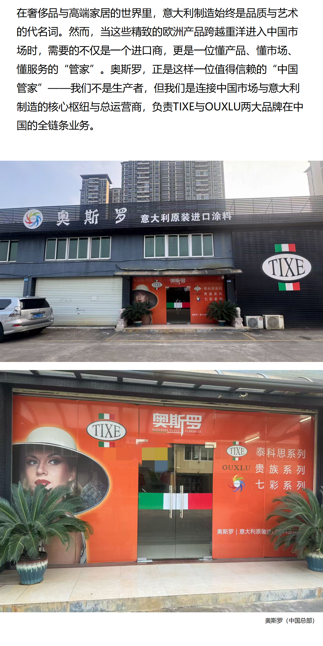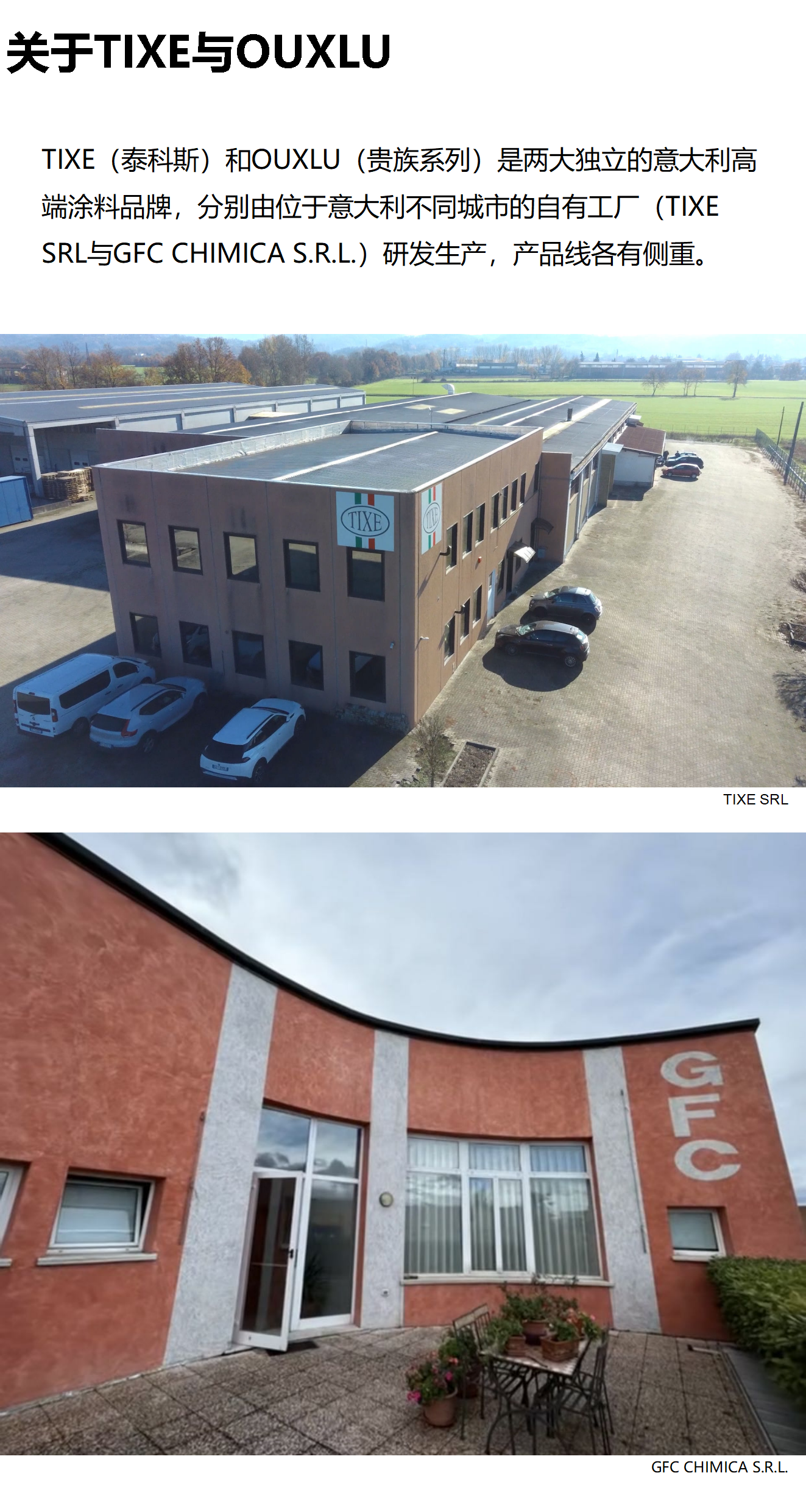 TIXE(泰科斯)和OUXLU(贵族系列)是两大独立的意大利高端涂料品牌,