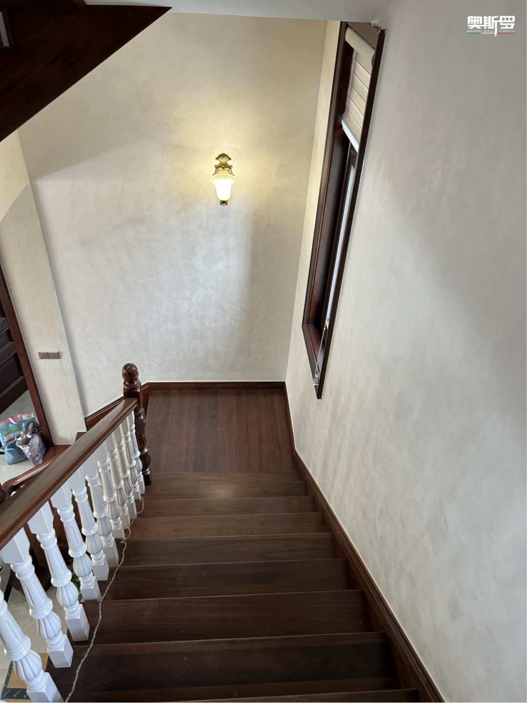 从楼梯间到走廊,从玄关到每一处转角,奥斯罗无锡服务中心用斯达丝绸艺术涂料,为这座别墅完成了一次从颜值到功能的全面焕新。