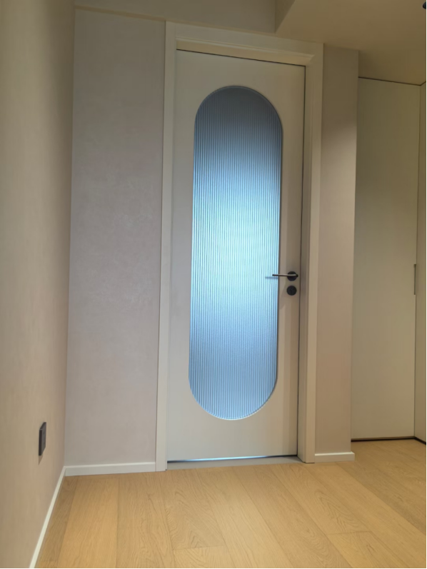 玄关与隐形门:图片中那扇与墙面几乎 “隐身” 的门,正是借玛泰实现了 “同色同肌理” 的效果。墙面与门体的色调、触感完全一致,指尖触碰时,是似天然石灰岩的细腻砂砾感,却无石材的冰冷粗糙,反而带着一丝柔和的温度,既保持了极简的整洁感,又消解了大面积纯色的呆板,让 “隐形” 不只是视觉效果,更是触觉上的统一。