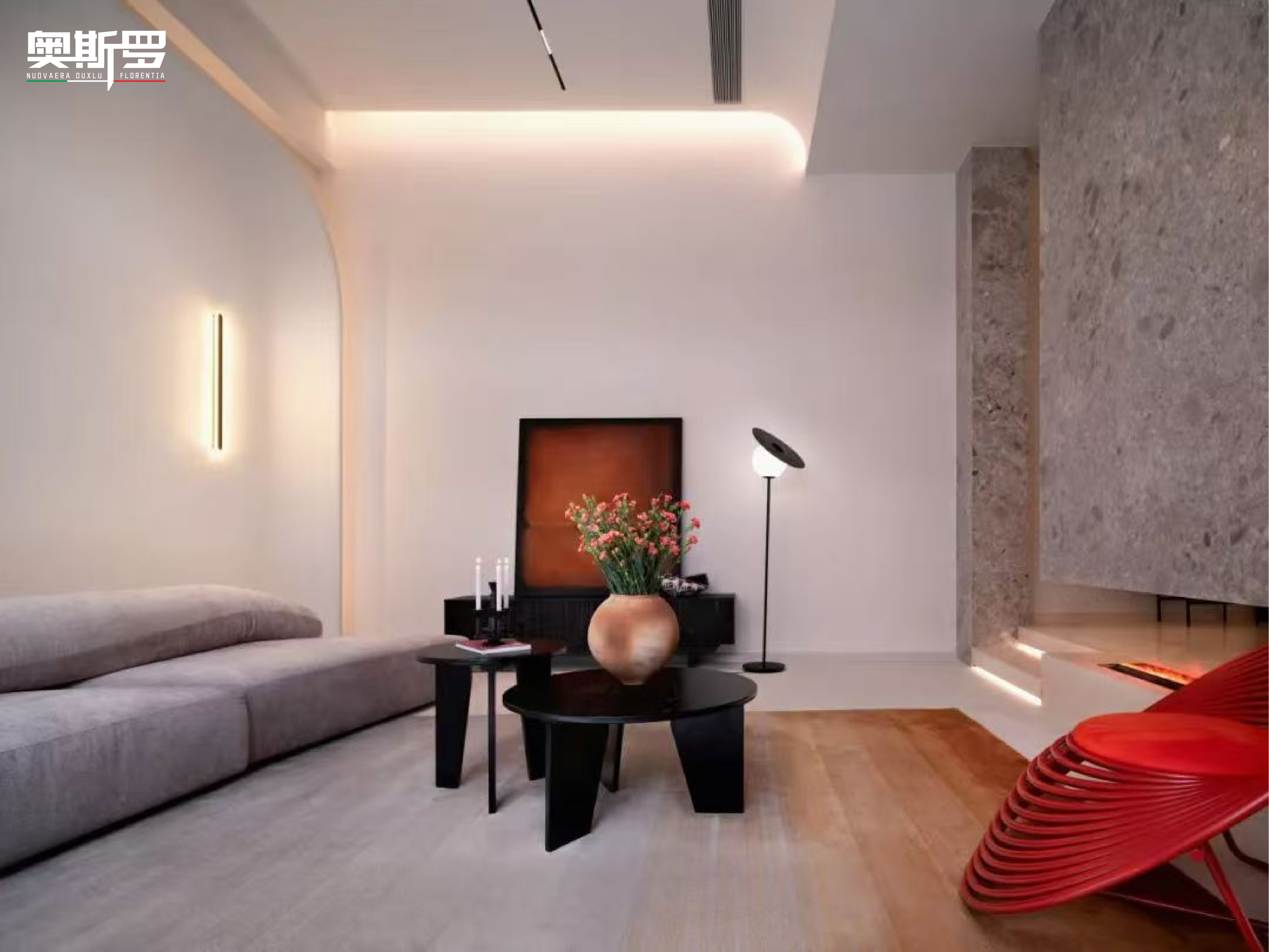 推开福州服务中心打造的这套极简私宅的门,没有繁复的装饰,却能立刻被一种 “柔而有骨” 的质感包裹 —— 浅调墙面泛着天然石材般的细腻肌理,指尖划过是温润不冰冷的触感,与木质吊顶、线性灯光轻轻咬合,而这一切的 “质感基底”,正是来自意大利TIXE系列的玛泰艺术涂料;这份意式质感能落地中国空间,则离不开奥斯罗(广州)公司搭建的链接纽带。