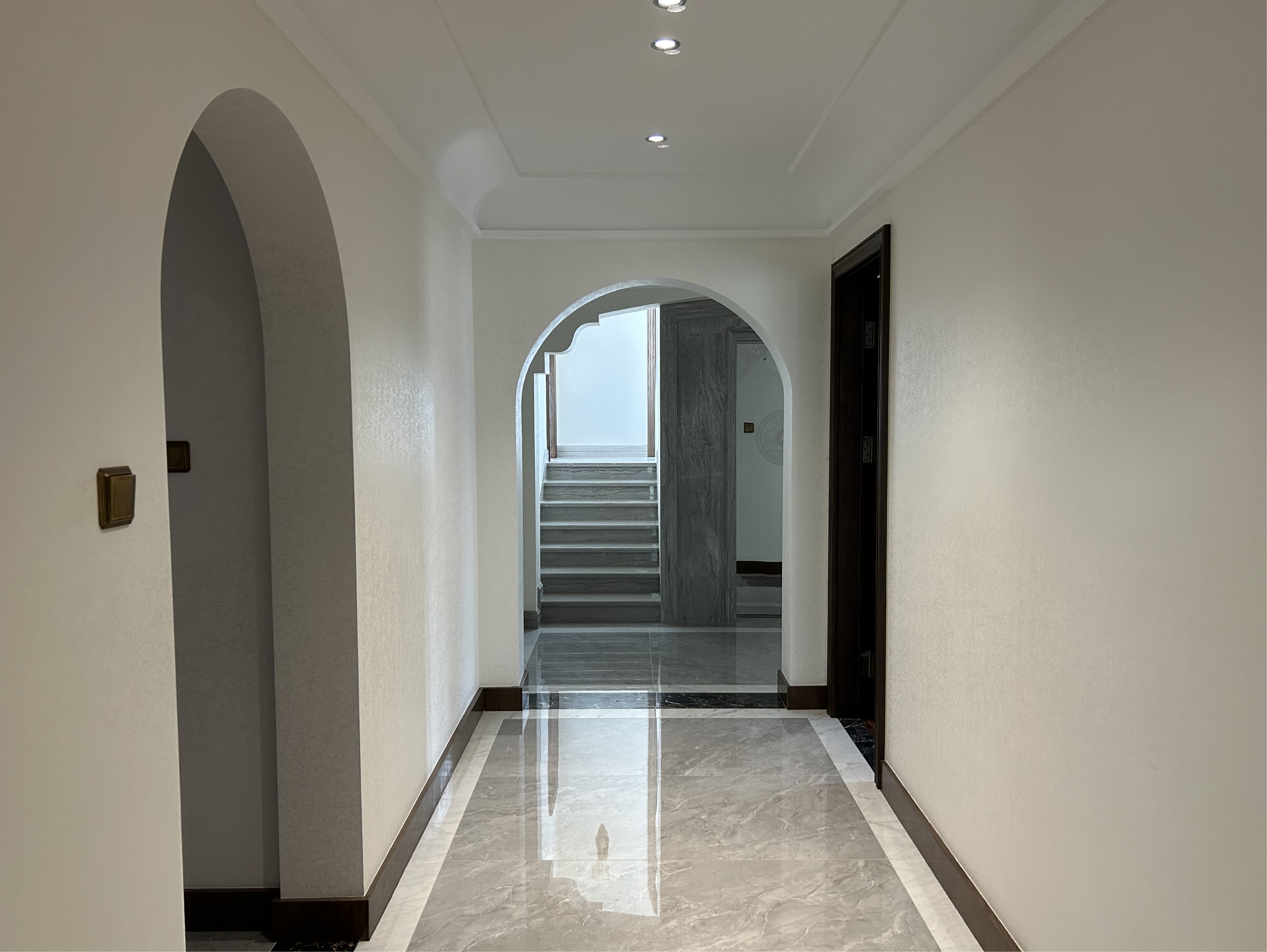 在合院的电梯厅与楼梯间,玛勒莫复刻的天然大理石质感,以简约线条勾勒出秩序之美。墙面随时间愈发坚硬的特性,从容应对高频使用场景,让日常通行的动线,也成为家族品味的无声表达。