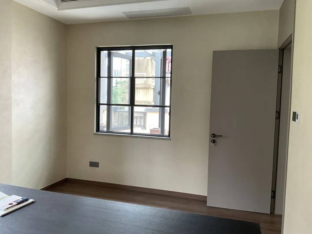 浅米色的墙面铺陈开来,半哑的质感让空间瞬间褪去了公共区域的张扬,多了几分沉静与温暖。在柔和的顶光与侧光映衬下,墙面的肌理温润如玉,没有刺眼的反光,只有触手可及的细腻触感。无论是静谧的书房,还是舒适的主卧,半哑珍珠绒都以最温柔的姿态包裹着空间:书房里,浅调的半哑墙面与深色实木书桌相映,光影柔和,伏案时只觉心境沉静;卧室中,半哑珍珠绒的墙面隔绝了外界的喧嚣,搭配简约的柜体与柔和的软装,每一寸空间都透着松弛与安逸,让身心在此彻底舒展。