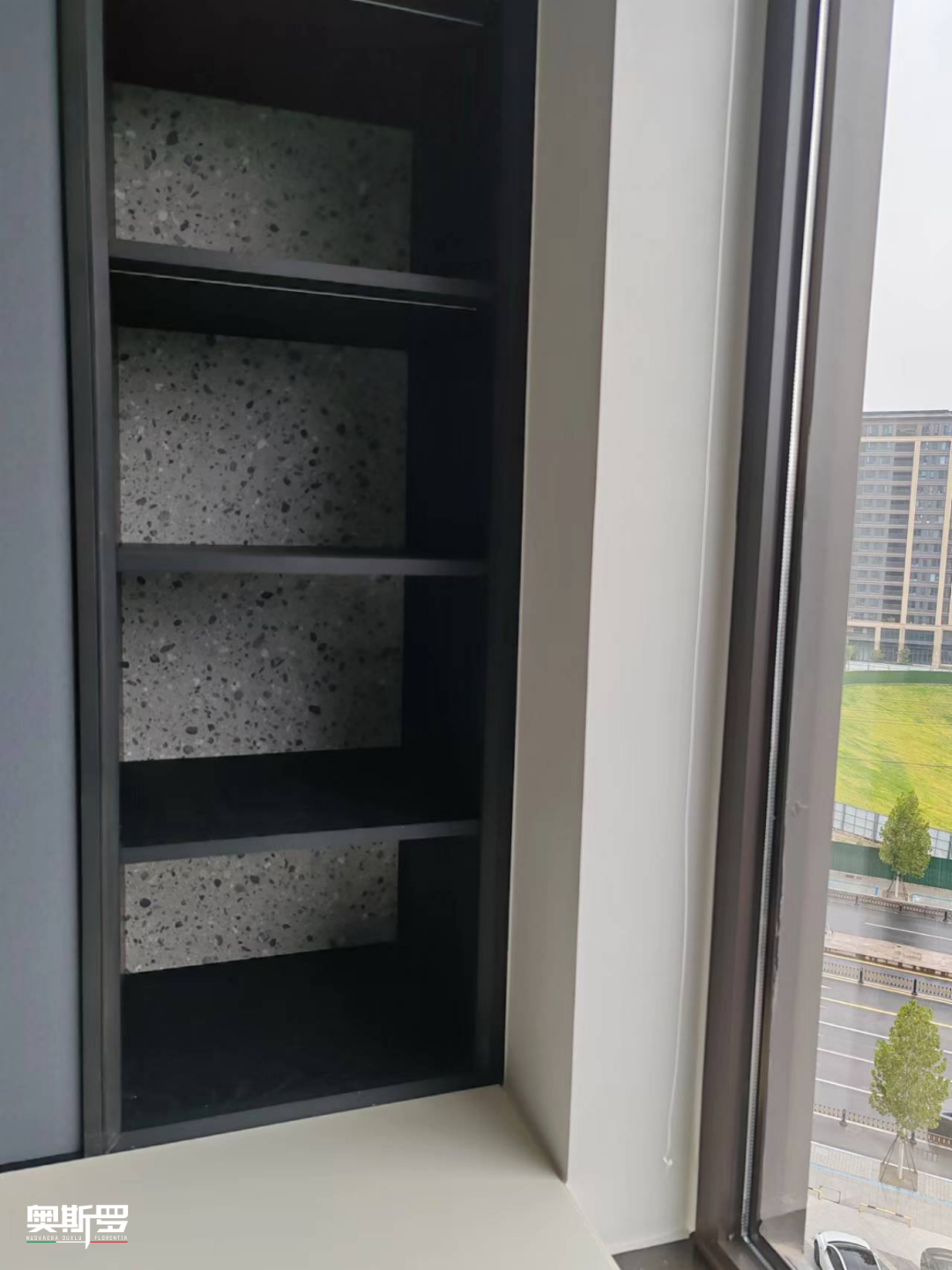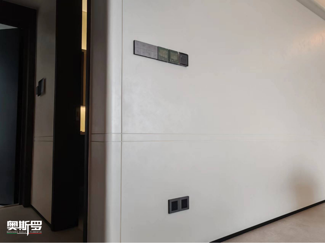 它曾是文艺复兴时期贵族宅邸的墙面语言,如今被奥斯罗义乌服务中心的工匠们以手工擦抹的方式,赋予了金属质感的全新表达。细腻的膏体在墙面上层层叠加,每一次擦拭都带着温度,最终形成的肌理既有着大理石般的通透光泽,又带着手工艺术的不可复制性 —— 没有两面完全相同的墙,每一处都是独属于这个家的印记。